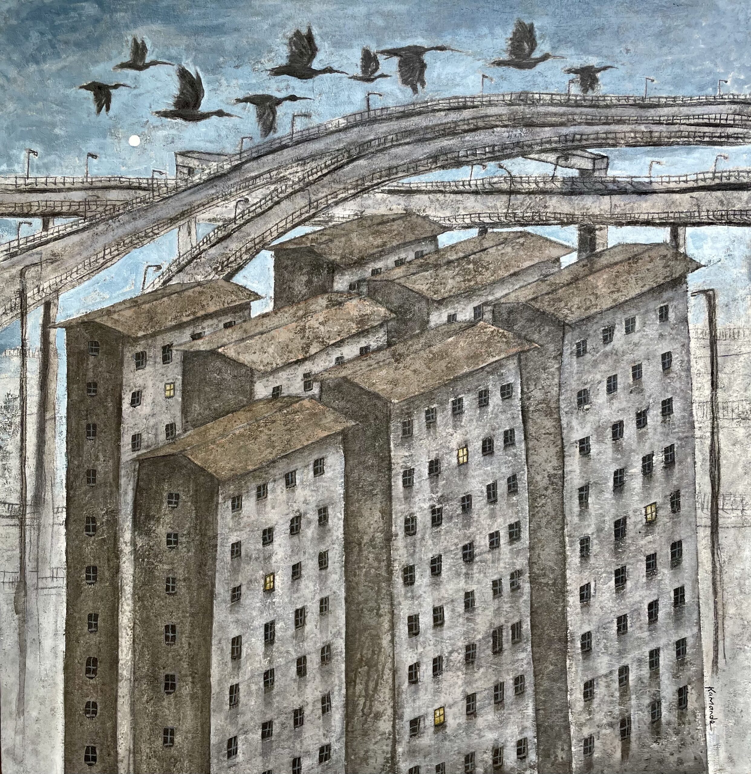 Through texture and tone, I reimagine the rhythm of Nairobi — its bridges, birds, and borrowed moons — where stories of survival meet dreams of flight.